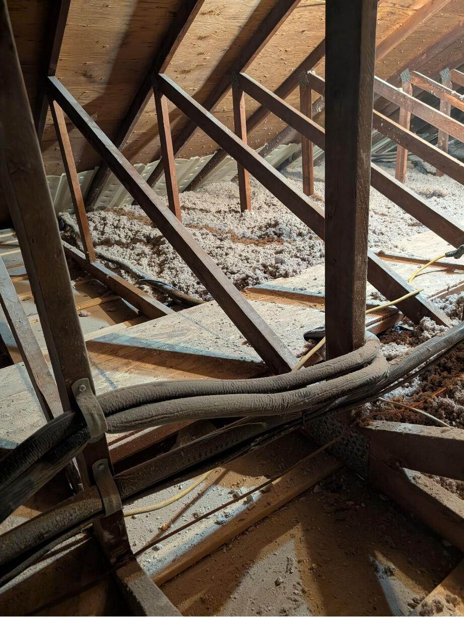 We had the perfect solution for this customer. We were able to replace the attic insulation with TruSoft™ cellulose insulation. We started by removing the batt insulation, putting it in large bags. We then went in and air-sealed around all of the points where air leaks up from the home to the attic. We did this using our Zypfoam™ spray foam. Once the atitc is air sealed, we used a long hose to blow in TruSoft™ cellulose insulation. TruSoft™ is amazing -- it does not burn, get moldy, or attract pests. The blown-in insulation fills all gaps and oddly shaped voids. The homeowner is now much more comfortable in his home!