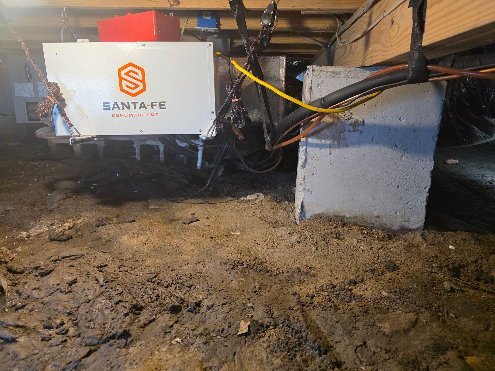 This crawlspace had a plumbing leak and ongoing high humidity. The homeowner called the trusted experts at DryZone for a free inspection, and we solved the issue with DrainageMatting, CleanSpace, and a Santa Fe Dehumidifier.