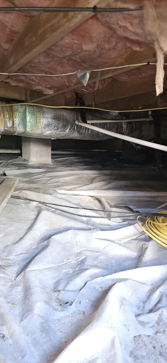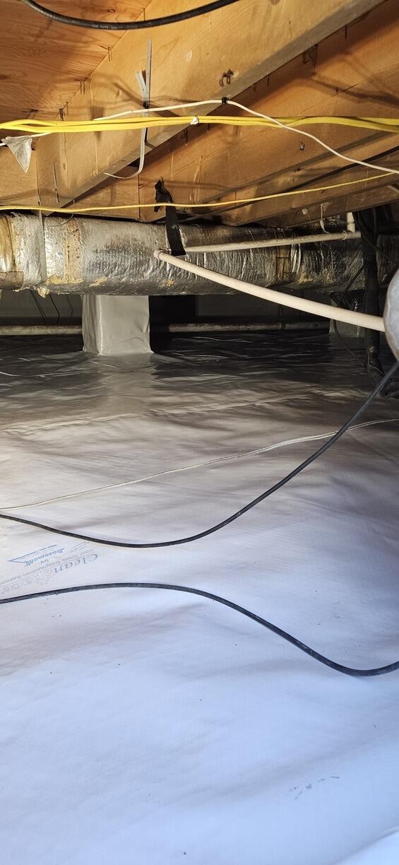 These homeowners love their house. They have invested a great deal of time and finances into making it their home. Thin plastic tossed on the ground in the crawl space was doing nothing to protect the investment that they had made into their home. Humidity and ground water encroachment are evident in this before picture. Team DryZone laid down drainage matting beneath Clean Space 20 millimeter liner. The drainage matting will allow ground water to flow beneath the crawl space liner. The Clean Space liner is uniquely designed for flexibility and longevity along with having an odorless antimicrobial additive which will prevent microbial growth. This is exactly the way homeowners who care about the longevity of their home want their crawl space to be protected.