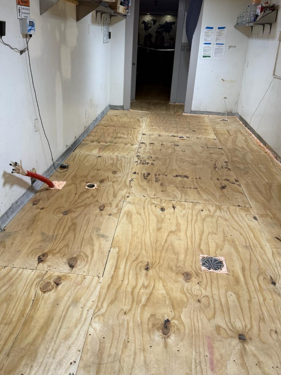 A businesses owner had a serious concern of their kitchen area in a restaurant near the freezer. The subfloor was starting to rot and fall in because of it. We came in, removed and replaces the subfloor, and created a happy business owner.