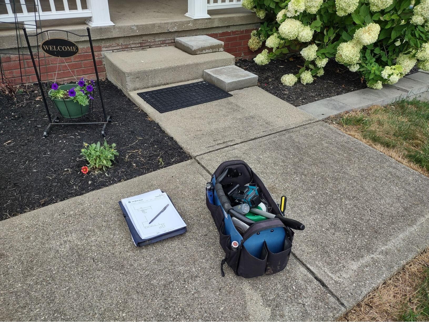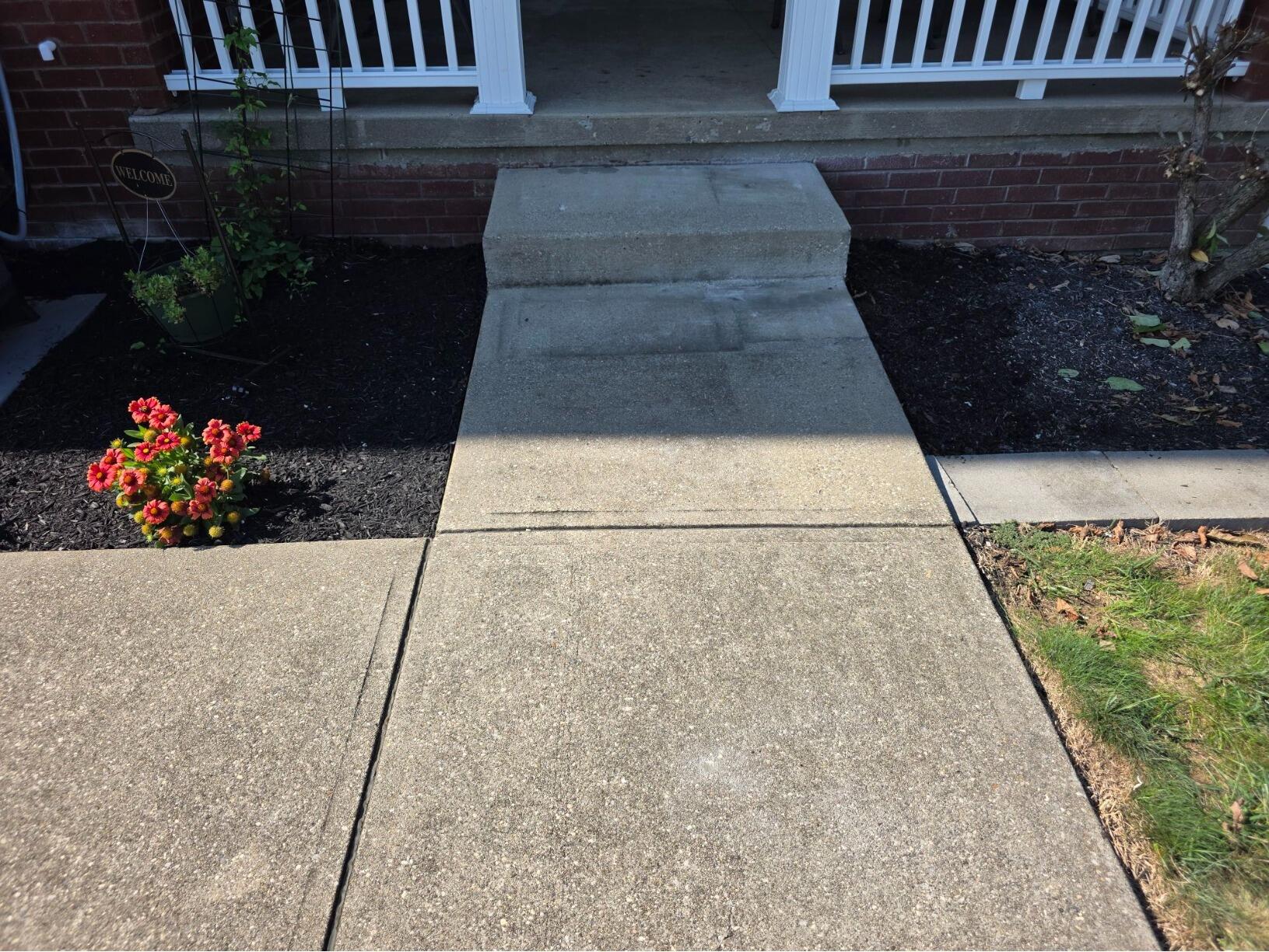 This concrete sidewalk in Dry Ridge, KY, settled over time, causing an awkwardly large step needed to access the front porch. We lifted and leveled out the concrete by injecting the sidewalk with PolyLevel foam. This process was able to shrink the large gap between the porch and the adjacent step, allowing the homeowners to safely walk in and out of the home.