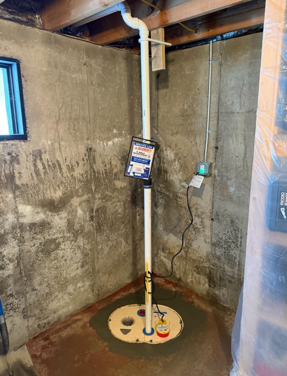 Auburn, Maine homeowners had an old sump pit that would overflow with water when it rained. We installed a TripleSafe sump pump to properly handle the groundwater and pump it away from the home, rather than allowing it to flood the basement. The TripleSafe system features two Zoeller pumps that can work together to handle over 6,000 gallons of water per hour if needed.