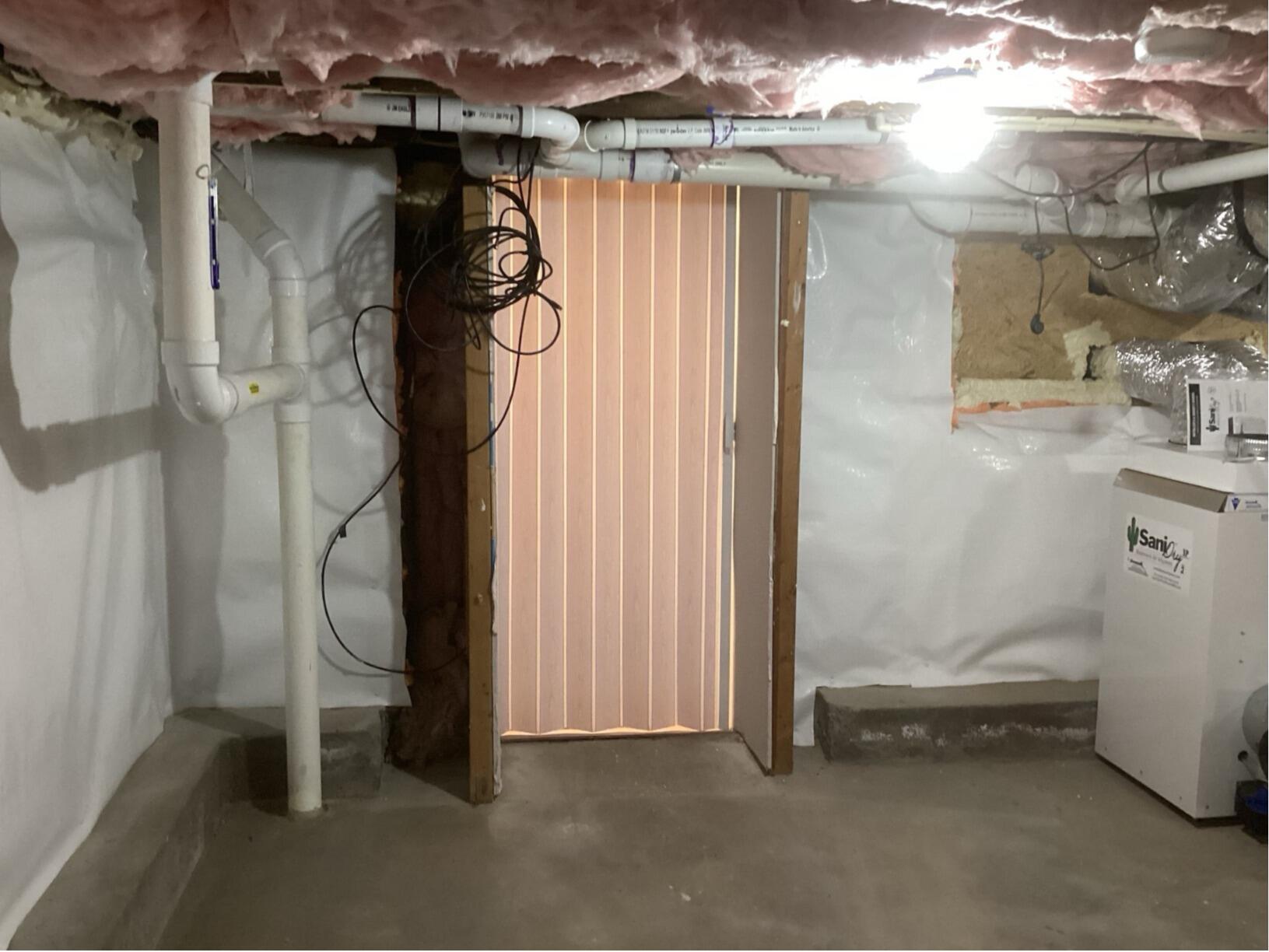 A homeowner in Mansfield, MA reached out to us because the unfinished half of their basement was very damp and filled with moisture. Our foreman, Kervin, and his crew installed our CleanSpace Wall System along each wall in the unfinished basement to act as a vapor barrier and seal out moisture. Then they installed our SaniDry XP dehumidifier in the space to keep the humidity under control. The SaniDry XP is a commercial grade dehumidifier that conveniently drains itself. Now the homeowner won't have to worry about moisture buildup in their unfinished basement!
