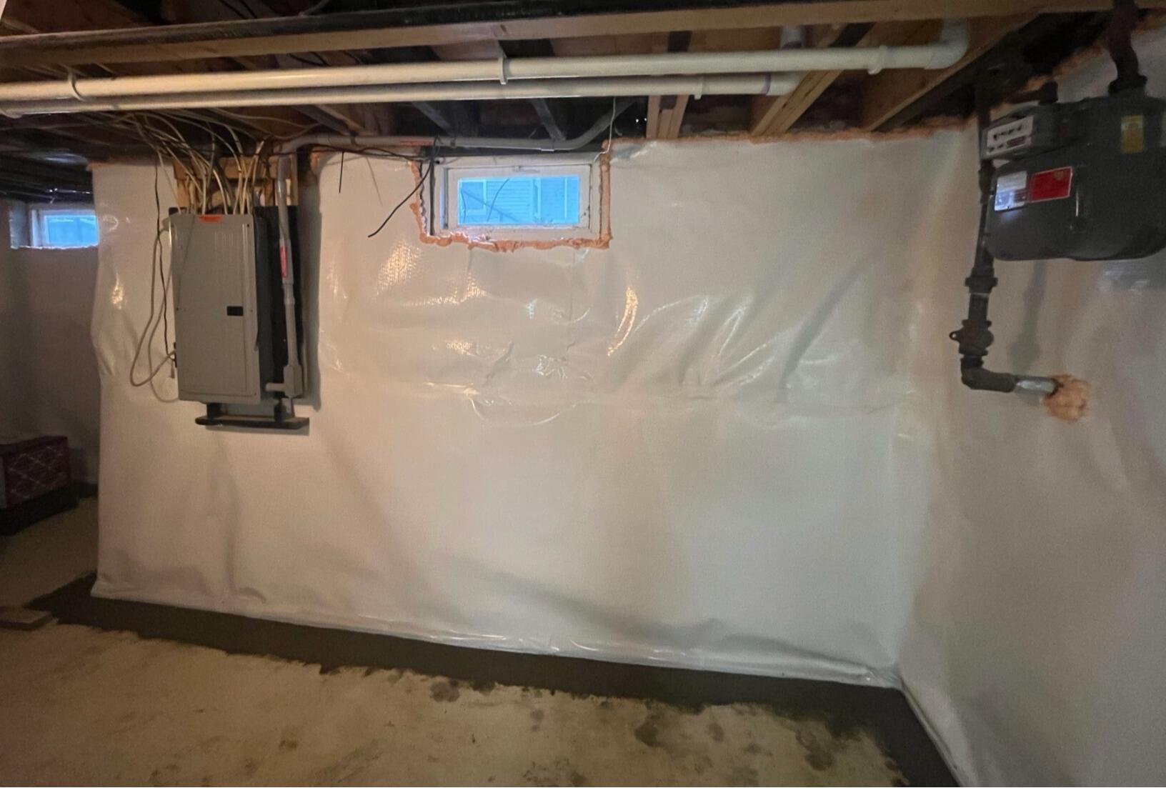 This homeowner in Worcester, MA gave us a call because water was entering their basement through the walls and floor. On installation day, Foreman MJ and his crew started by installing our CleanSpace vapor barrier seamlessly along each wall to corral that seepage into the WaterGuard drainage system which was installed along the floor's entire perimeter to collect groundwater. They also set up our SaniDry Sedona dehumidifier in the basement to eliminate excess moisture in the air. The water collected in the drainage system and dehumidifier is then channeled into the TripleSafe sump pump which sends it out of the basement through the two discharge lines. On the outside of the home, the IceGuard discharge line system was set up to prevent water from flooding back into the basement if the discharge line ever clogs or freezes. Now the homeowner can have peace of mind next time it rains!