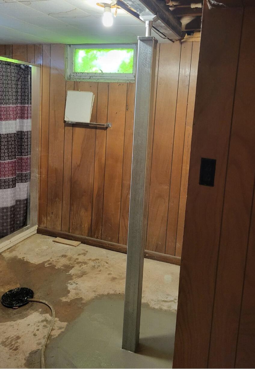 Sure-Dry installed the SmartJack Structural Support System to stabilize and lift the sagging floor system. This system uses adjustable steel support posts placed on engineered bases to transfer the weight of the home to more stable soil layers below. Installation was completed by certified technicians, carefully restoring support to the weakened areas and addressing the underlying cause of the uneven floors.