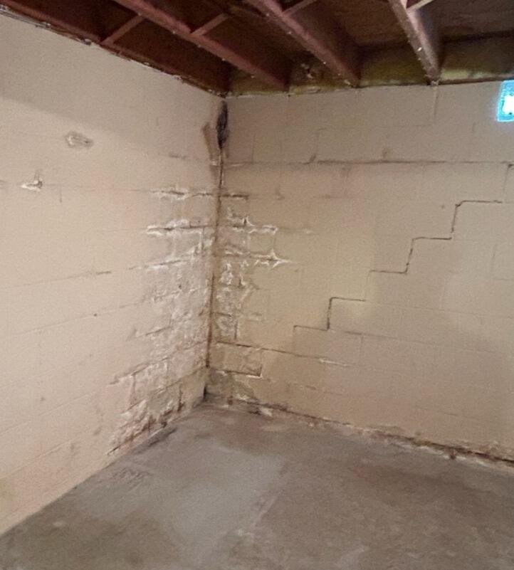 Facing severe basement issues in Blue Earth, Minnesota? This homeowner experienced significant foundation wall bowing, visible stairstep cracks, and water seepage into their basement, leading to a wet, musty environment and concerns about mold and structural integrity. They contacted our experts for comprehensive basement waterproofing and foundation repair solutions.