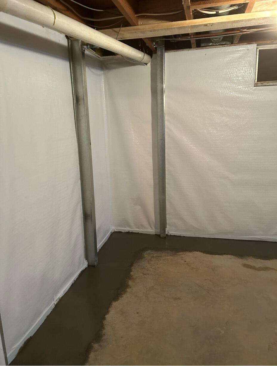 Our team provided a tailored basement repair plan for this Blue Earth, MN home, installing PowerBraces to permanently stabilize the bowing foundation wall. To eliminate water intrusion, a WaterGuard interior drainage system was integrated, efficiently directing all water seepage to a new sump pump. Completing the basement waterproofing, a CleanSpace vapor barrier was applied to the walls, preventing moisture and providing a bright, clean look.