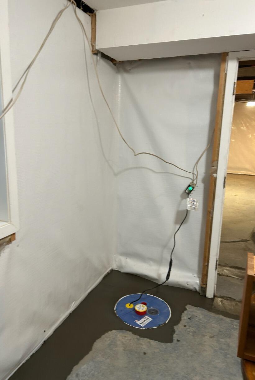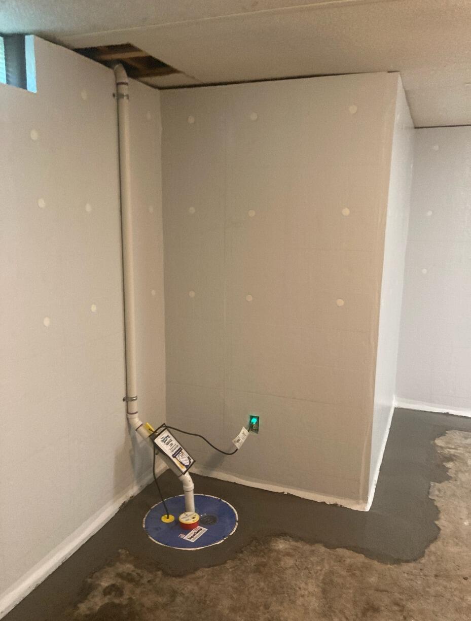 To permanently solve the problem, our team installed a full waterproofing system using CleanSpace, WaterGuard, and a SuperSump. CleanSpace acts as a moisture barrier on the walls, keeping water vapor and seepage at bay. WaterGuard, our drain tile system, was installed along the perimeter to capture any water entering at the wall-floor joint. Finally, the SuperSump system was added to reliably pump out collected water and keep the basement dry. Now, the homeowner can enjoy their finished basement with confidence, knowing it’s protected from future water damage.