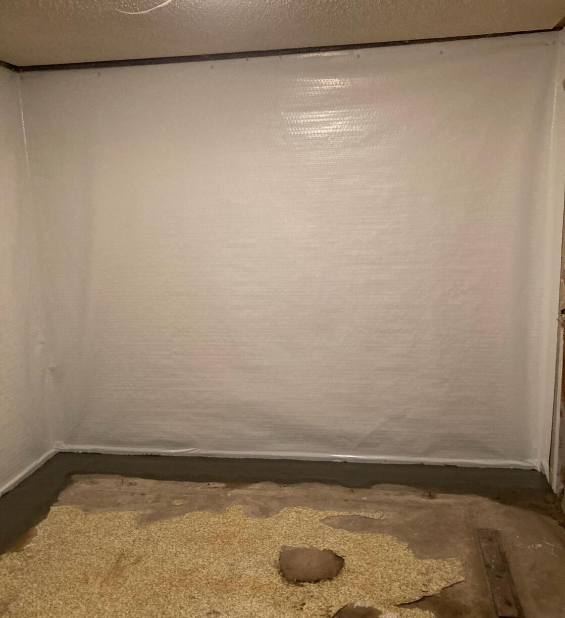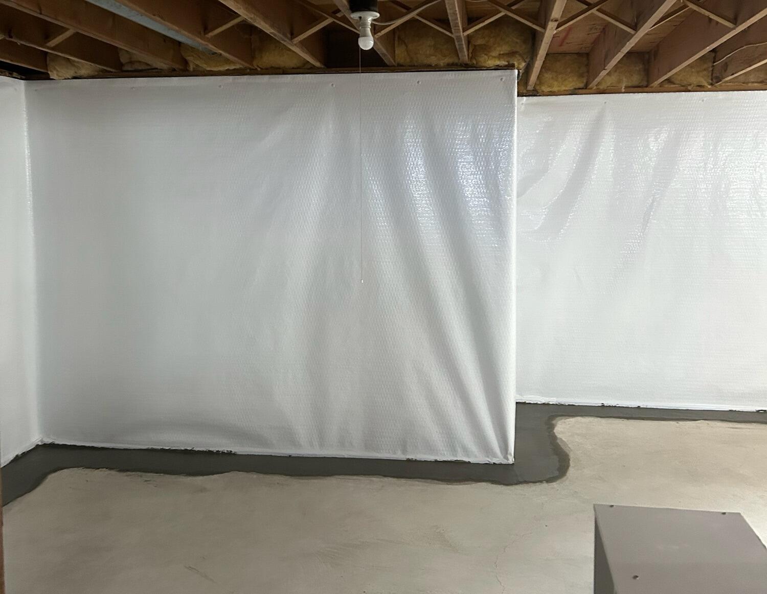 The CleanSpace Wall System they put up is a strong, bright liner that stops water vapor from permeating the walls, and drain wall leaks into the WaterGuard. It is installed with permanent drilled-in fasteners. It conforms to bumpy walls and is easily washable to create a nice, clean surface.