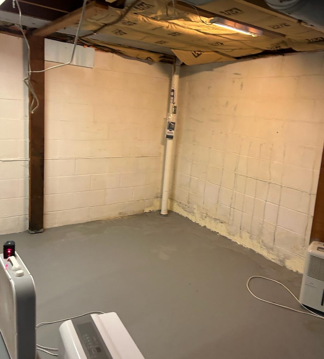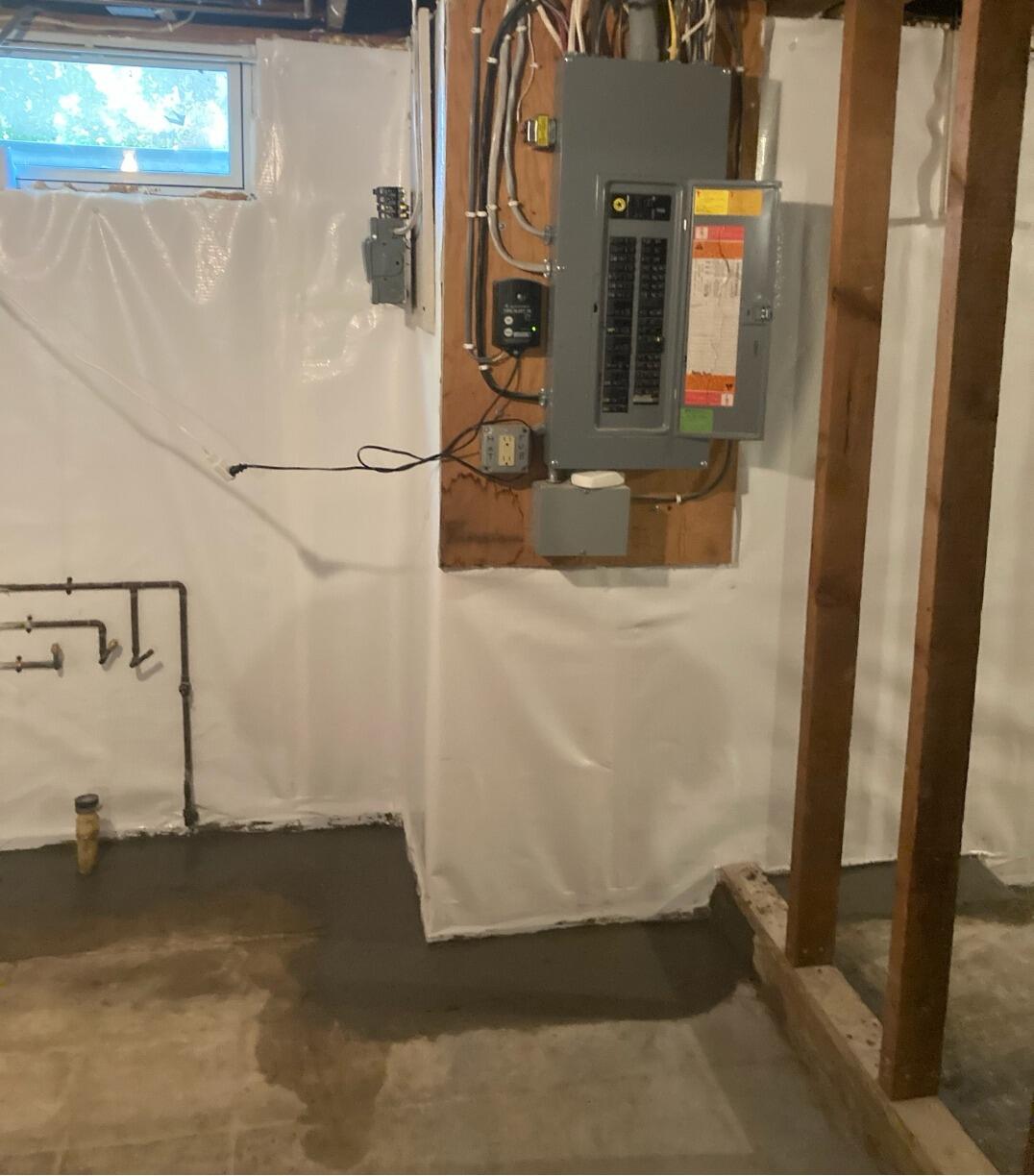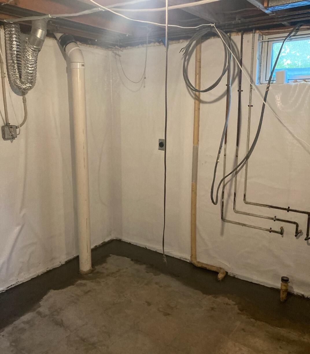 Our team inspected the basement and recommended a custom waterproofing system using CleanSpace and WaterGuard. We installed the WaterGuard interior drainage system along the perimeter of the basement floor to capture incoming water before it even reaches the basement space. Then, we sealed the walls with CleanSpace, a durable vapor barrier that helps control moisture, humidity, and mold risk.