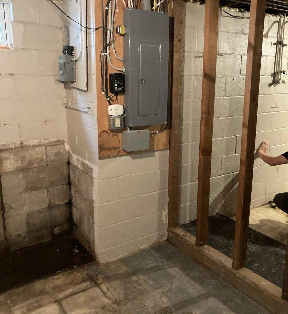 Our System Design Specialist quickly came to evaluate the situation. He quickly concluded that the foundation wall was unlevel and had shifted due to hydrostatic pressure from the outside causing a lot of pressure on the block foundation wall and needed to be stabilized to prevent the worse from happening, a collapsed wall.