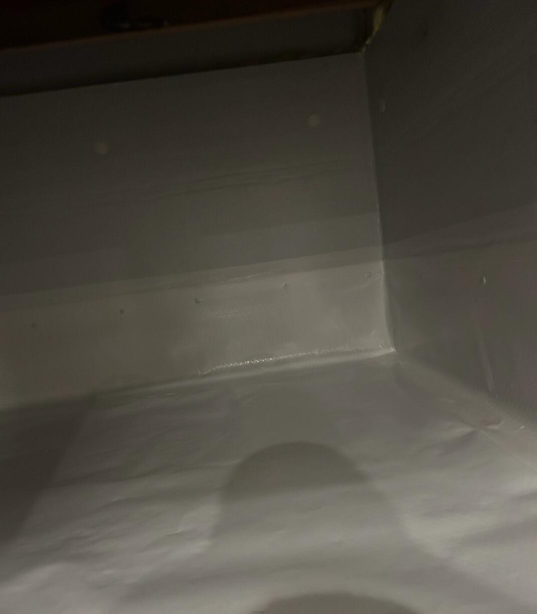 CleanSpace Liner and CleanSpace Drainage Matting were installed to fully encapsulate the crawl space with a 20 mil thick liner along the walls and floor of the dirt crawl space.