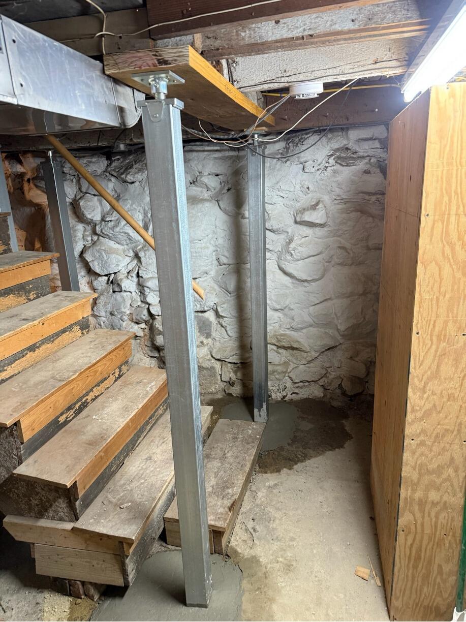 This homeowner in Andover, MA, recently moved in and noticed sloping floors, as shown in the before photo. Our inspection revealed inadequately supported lally columns in their basement. To address this foundational concern, we installed the SmartJack® System. This system efficiently stabilized the basement beams and floor joists, lifting the floors toward their original elevation and minimizing floor bounce. Notice in the after photo, our SmartJack® delivers a secure solution by distributing the weight effectively across durable footings, ensuring strong, steady support for the long term.