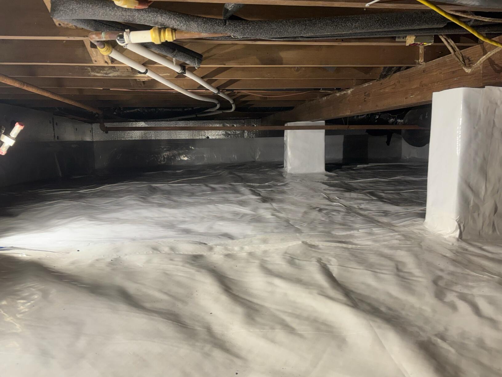 The homeowner in Howell, NJ had a cold, damp crawl space. Our team installed CleanSpace and SilverGlo to seal out moisture and improve comfort.