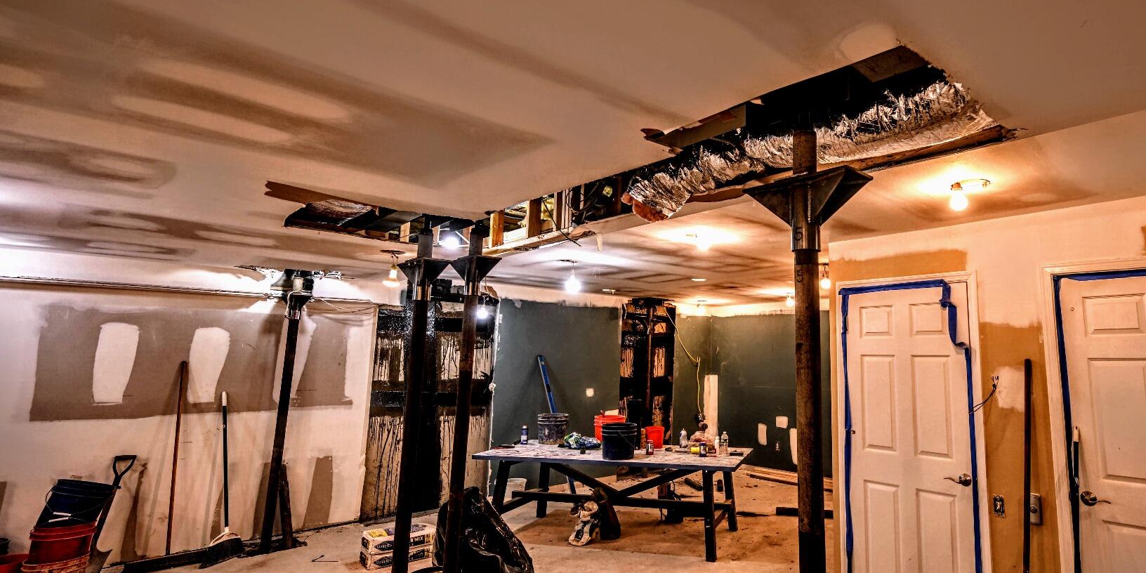 To make the home safe for our team and the family, we began by opening sections of the ceiling and installing SmartJack temporary supports. Once secured, we removed the failing lally columns never meant to be permanent and installed six Stabil-Loc Push Piers along the home’s steel I-beam main girder to permanently stabilize the structure.