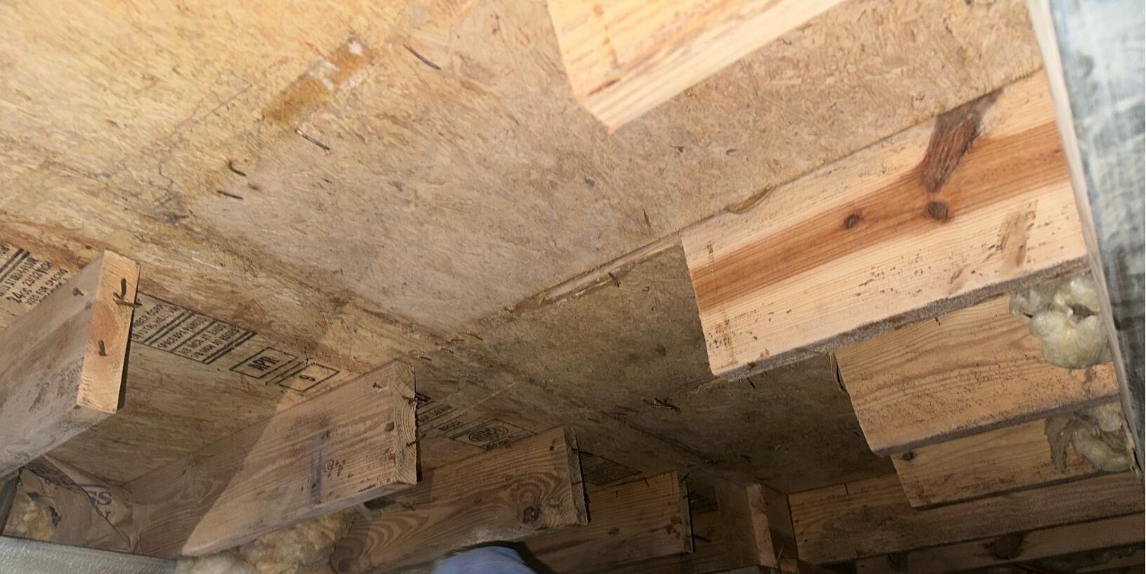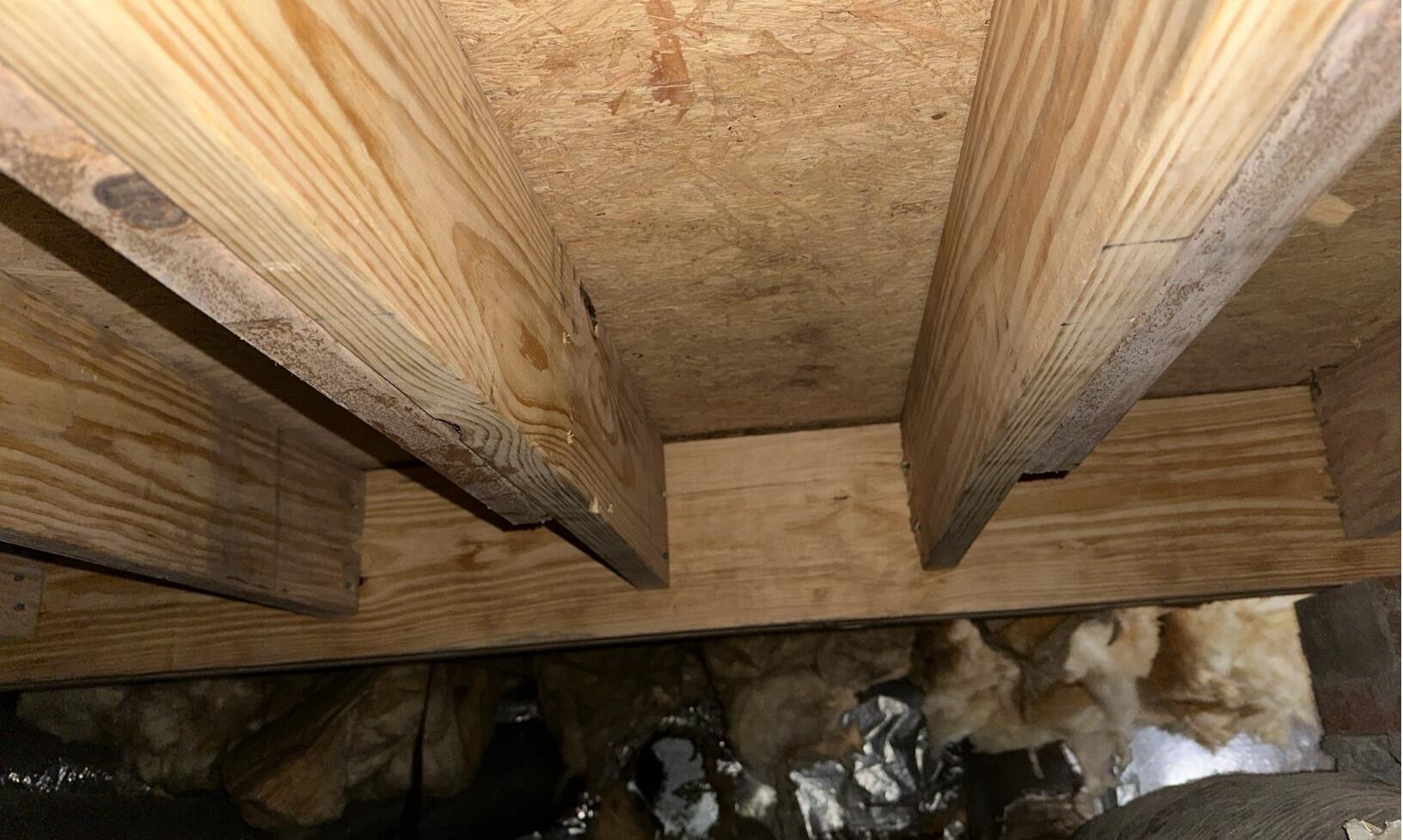 A homeowner contacted our office for help repairing their damaged floor joists. After assessing the space, our team sistered the joists with new material to restore structural integrity.