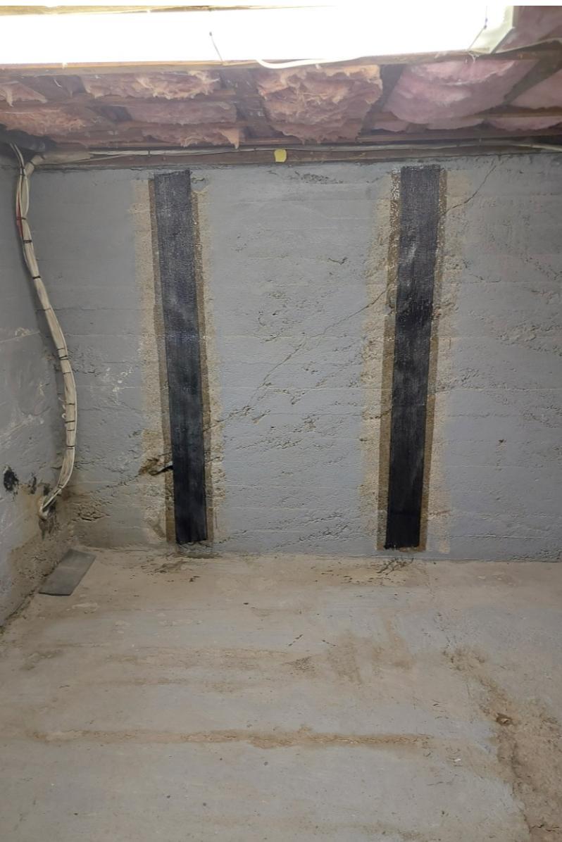 In this 70-year-old Sydney, NS home, one corner of the unfinished basement showed troubling thin, diagonal cracks. Our team at Ridgeback Basement Systems knew this was a sign of potential structural issues. With our non-invasive CarbonArmor® system, we've tackled the problem efficiently. Notice in the photo how we applied carbon fiber-reinforced polymers to contour and stabilize the wall. These polymers, along with our exclusive ArmorLock brackets, provide a permanent solution, preventing further wall movement. The high-strength epoxy resin ensures durability, keeping the basement stable and the homeowner's worries at bay.
