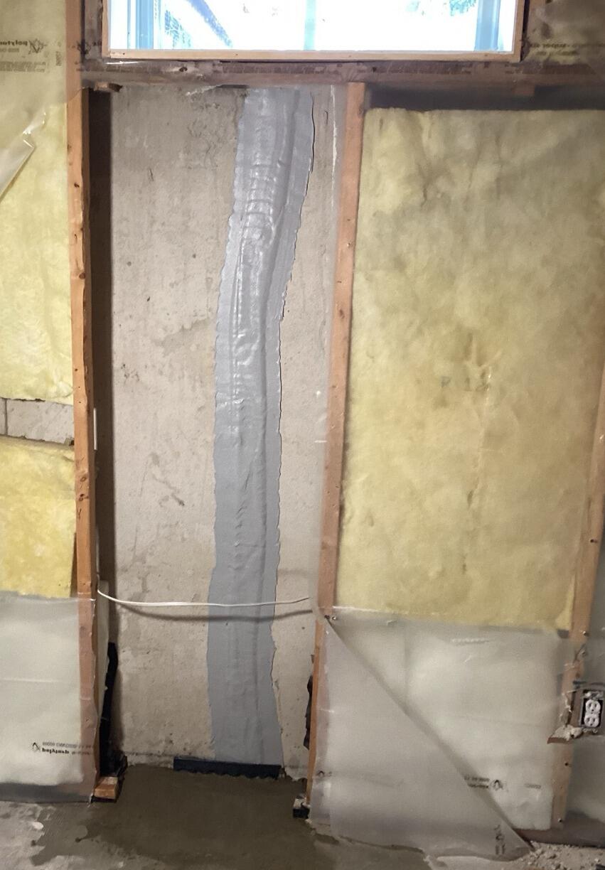 The owners found a crack in the poured concrete basement wall, which is a common occurrence. It does not pose as a structural issue but often times will lead to water leaks into the basement, causing a wet floor.