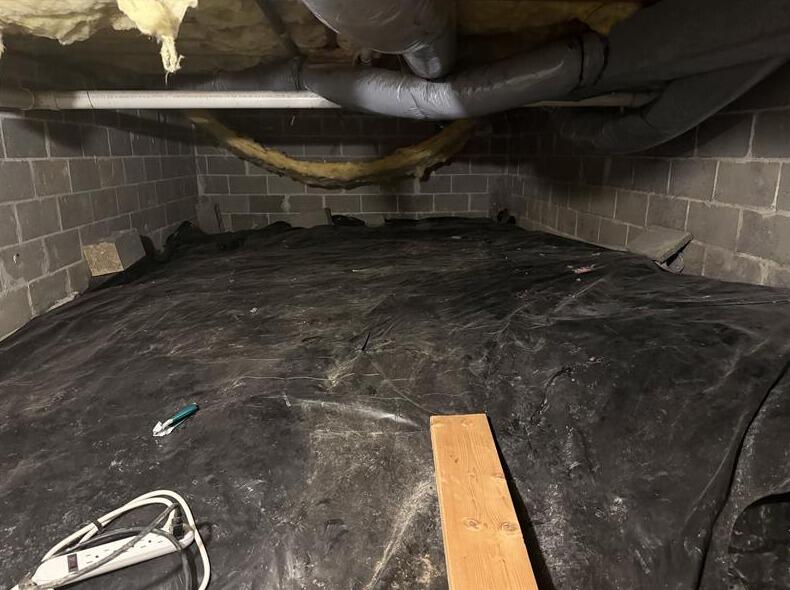 In order to prevent moisture from seeping through the basement walls and floor, we installed our CleanSpace Vapor Barrier System.