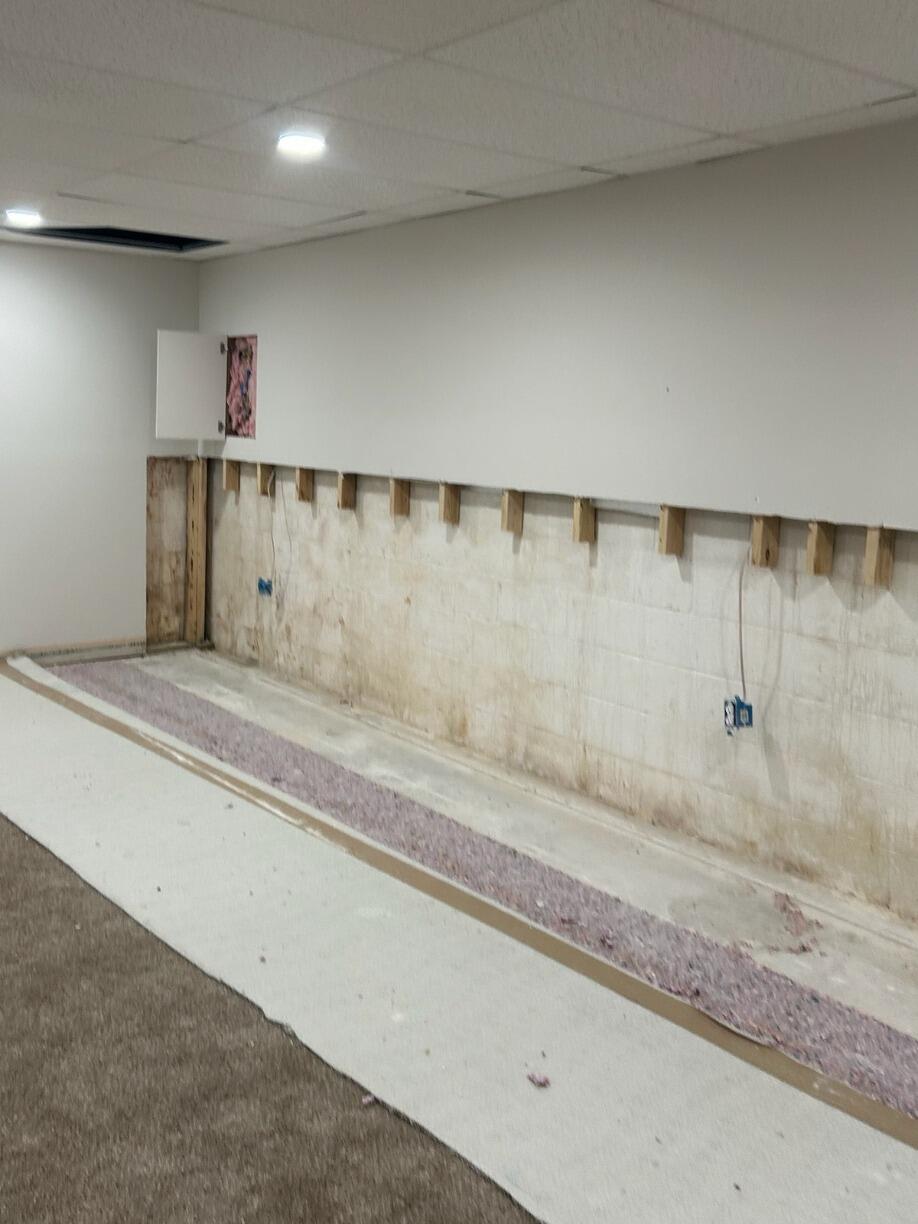 This customer in Clarksville, TN, called Frontier after a water intrusion in their basement. For this project, we began by removing the water-soaked drywall. Then, we installed our WaterGuard sub-floor drainage system.