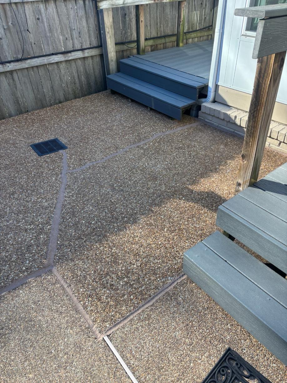 Latonya H. of Cordova, TN was having issues with her concrete patio. The concrete was sinking and settling, and there was not a proper drainage system to address water. Concrete expert Dalton and crew used our PolyLevelTM concrete injection system. This will permanently solve the concrete settlement issues. Next they installed proper drainage. This will relocate water from the patio out away from the house. Latonya is happy that she can use her patio all year long without worry.