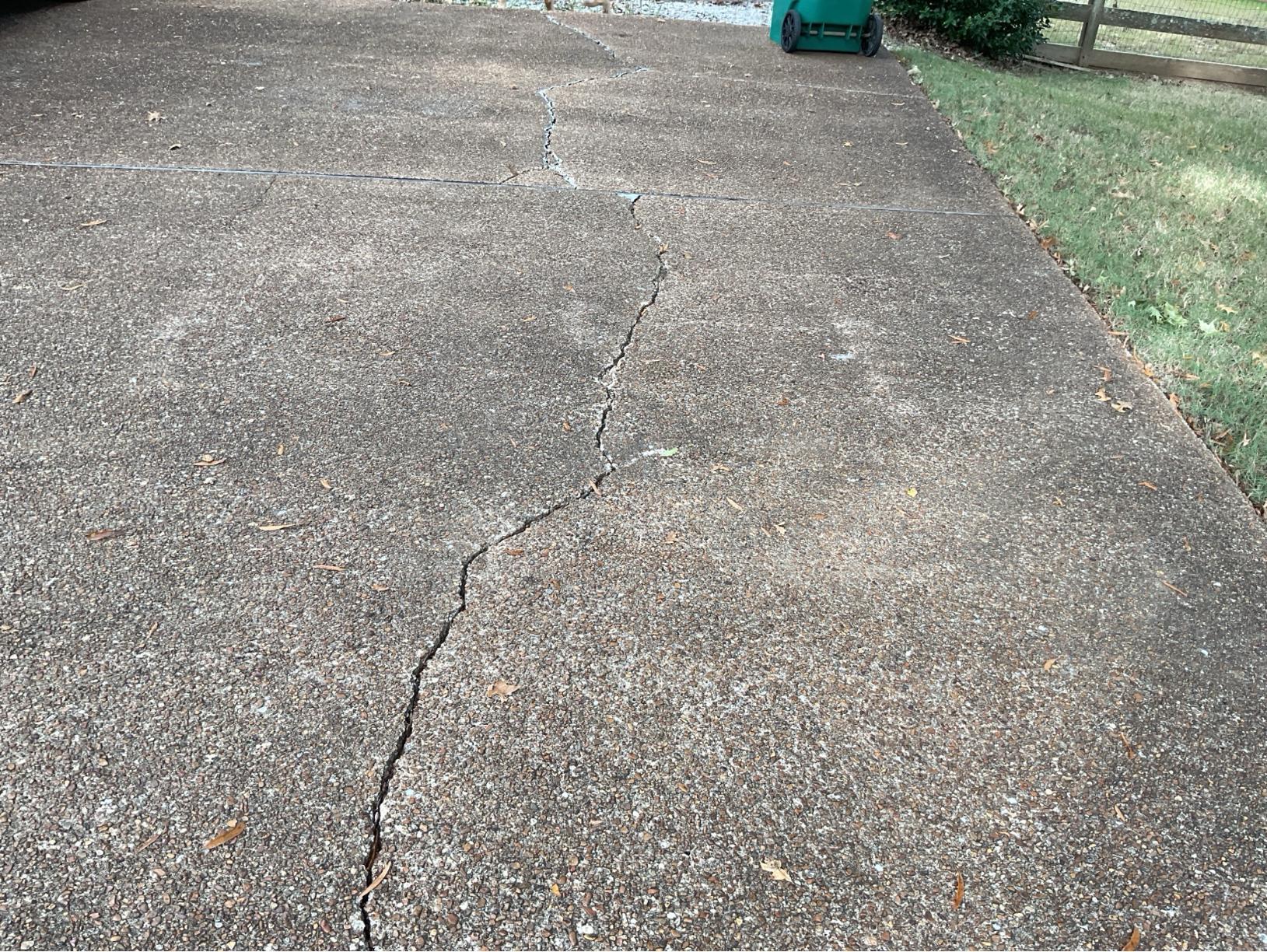 This project involved resolving long-term concrete settlement and extensive cracking on the northwest corner of a residential driveway in Rossville, TN. The homeowner, Bob P., wanted the issues corrected permanently, especially because this was their “forever home.” They disliked the appearance of the cracks and were concerned that a temporary DIY fix—such as store-bought caulking—would not stop the damage from spreading. The failing slabs and unsealed joints posed risks for continued settlement, water intrusion, and further structural deterioration.