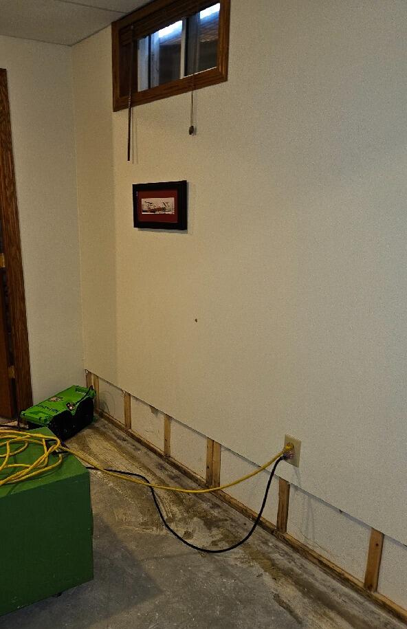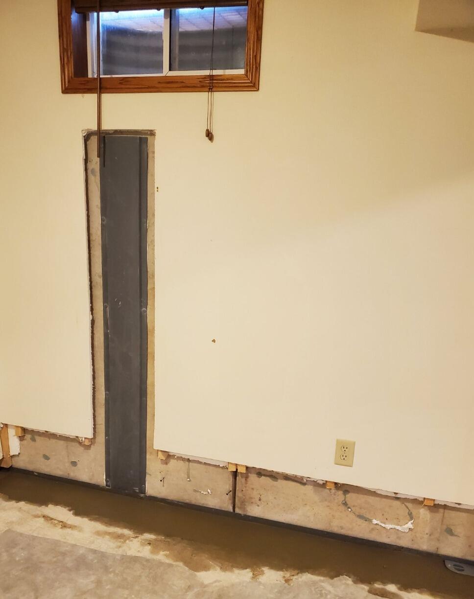 The homeowner in Manitowoc, WI experienced recurring basement water intrusion during heavy rain and seasonal snowmelt. Water was entering along the foundation perimeter at the wall-to-floor joint, creating damp conditions and concern about long-term moisture damage.