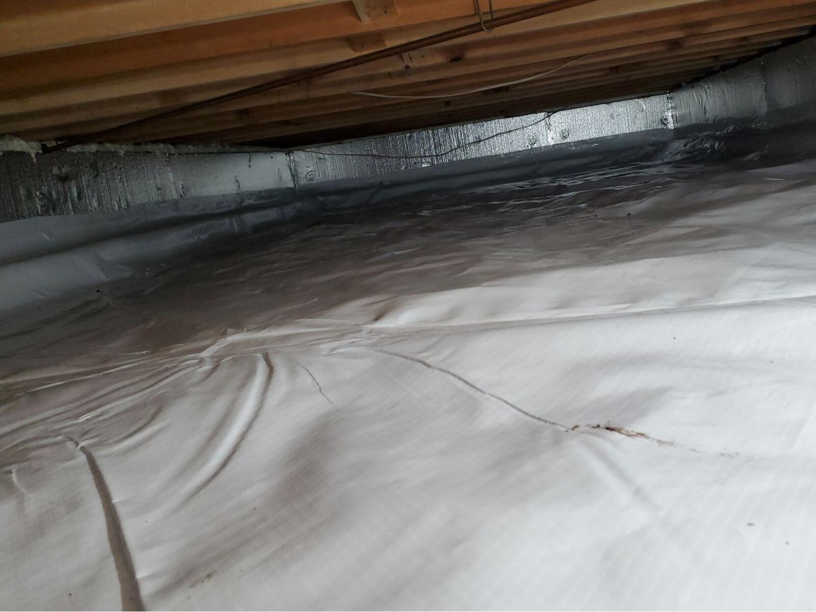 Sure-Dry completed a full crawl space encapsulation system using CleanSpace® to seal the exposed soil and prevent ground moisture intrusion. The foundation walls were insulated with SilverGlo™ panels to create a continuous thermal barrier and improve overall energy performance.