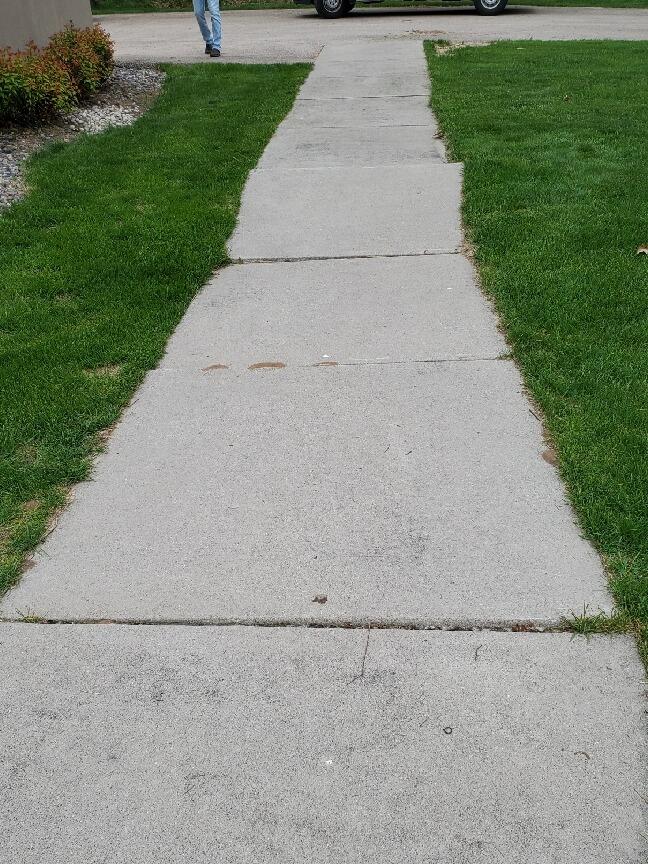 The homeowner in Marinette, WI had a concrete sidewalk leading to the front of the home with severe sinking and unlevel slabs, creating pronounced trip hazards and an unsafe walking surface. Sections of the sidewalk had shifted out of alignment, allowing water to collect and drain back toward the foundation. These conditions are common in Marinette-area homes due to soil movement and repeated freeze-thaw cycles.