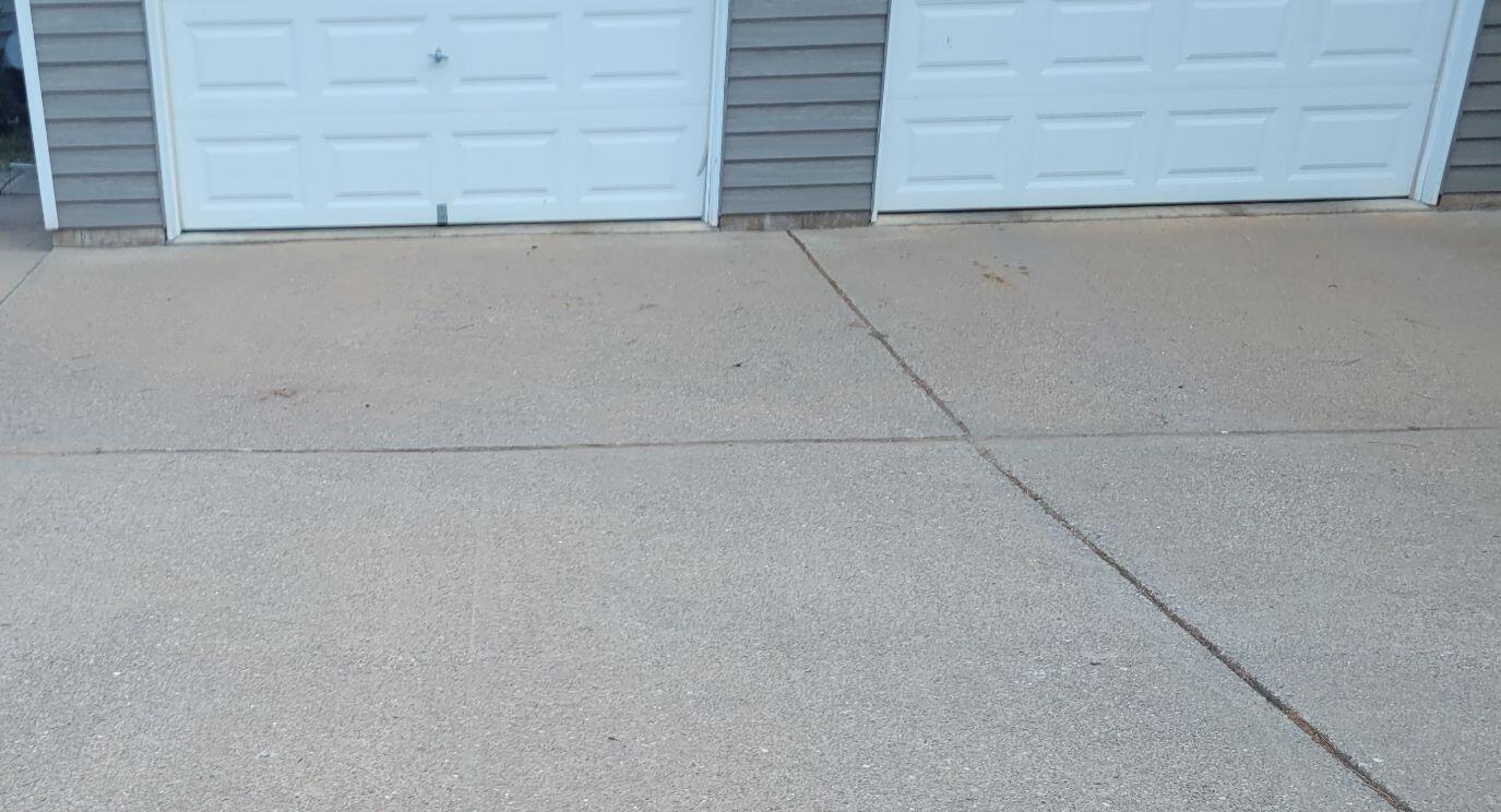 Before At a home in Florence, WI, the garage apron had begun to settle and crack, creating an uneven surface that trapped water, made parking difficult, and posed a tripping hazard. Throughout seasonal freeze-thaw cycles and heavy precipitation, water pooled against the foundation and in the driveway transition, accelerating concrete deterioration and leaving the homeowner frustrated with ongoing garage apron repair needs and uncomfortable with the safety risks underfoot.