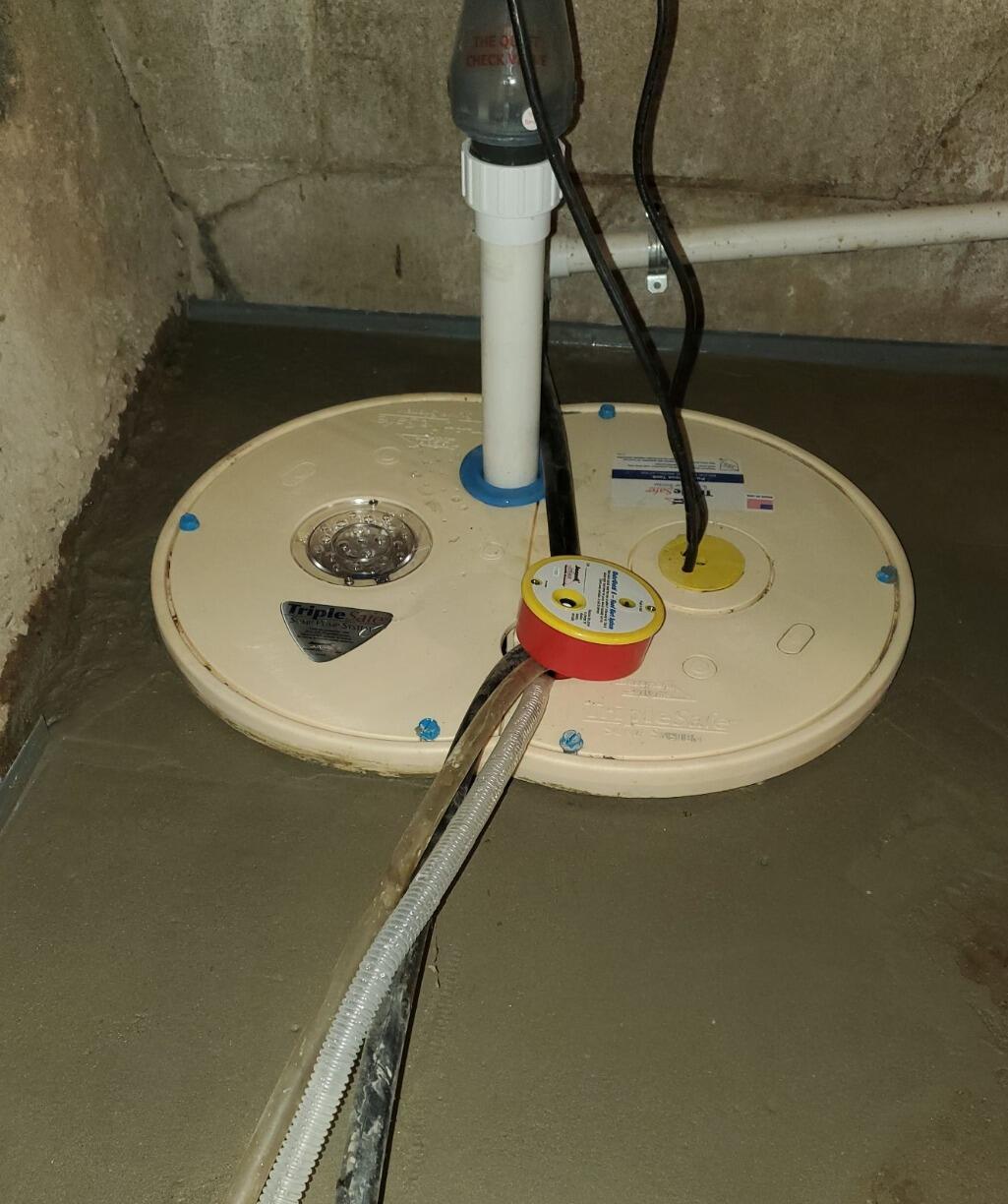 To drain the water being collected by the CleanSpace Vapor Barrier System, Sure-Dry installed their TripleSafe™ Sump Pump System. The TripleSafe Sump Pump System provides three levels of protection for your basement and your peace of mind. For normal functioning, the TripleSafe has a powerful, cast-iron Zoeller® ⅓ horsepower sump pump set at the lowest level. For heavy volumes of water or in case of primary pump failure, a second, more powerful Zoeller® ½ hp pump set a bit higher in the liner will take over. In case of a power outage, our UltraSump® battery backup sump pump, set at the highest level, will pump 11,500 gallons or more on a fully charged battery!