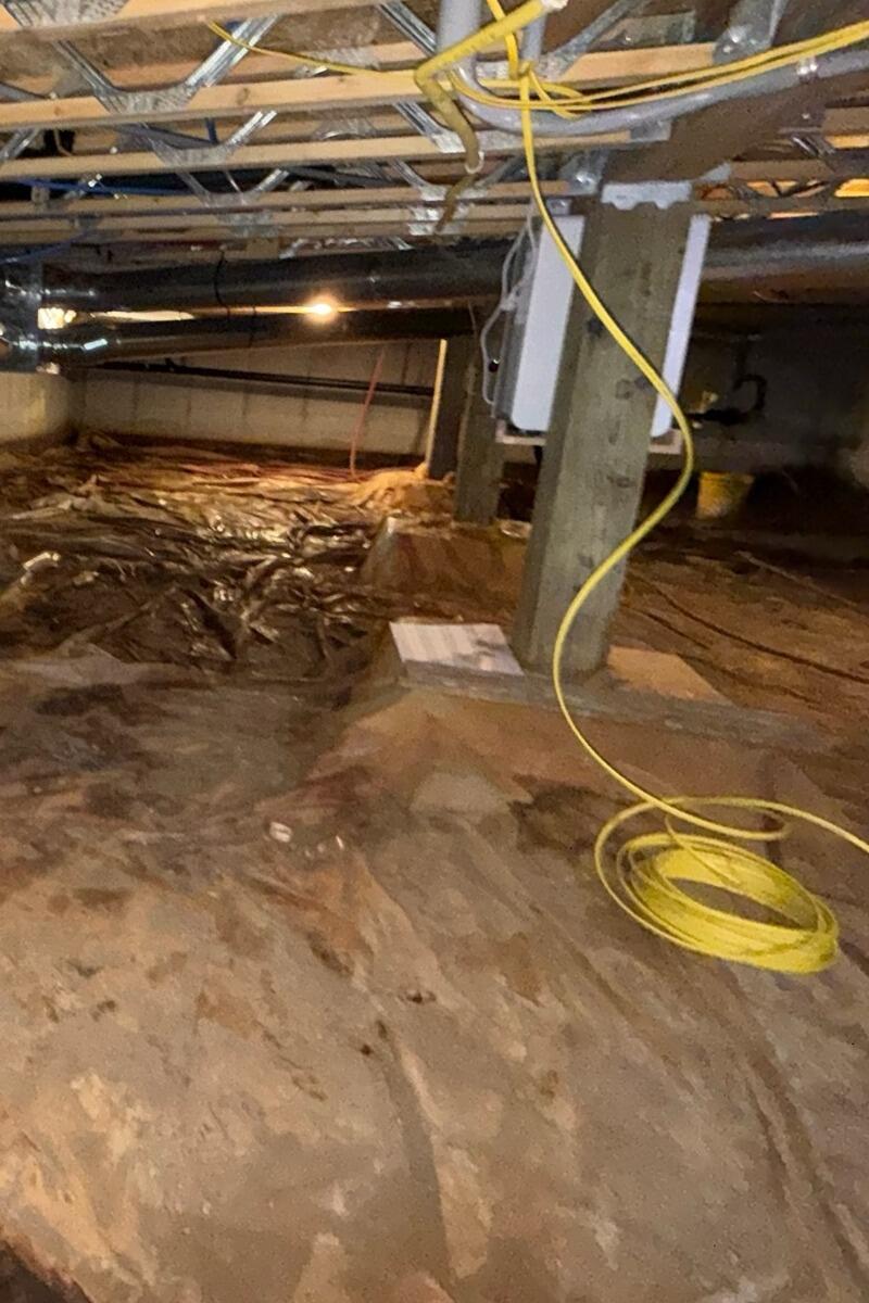 This crawl space liner was thin, flimsy, and couldn't protect the home from the flooding and moisture underneath. Now, it has our CleanSpace crawl space encapsulation system, which includes a heavy, 20 mil thick liner with antimicrobial protection. Combined with the radiant heat-reflecting barrier of our SilverGlo 2" crawl space wall insulation, this home will remain dry with superior energy savings for years to come.