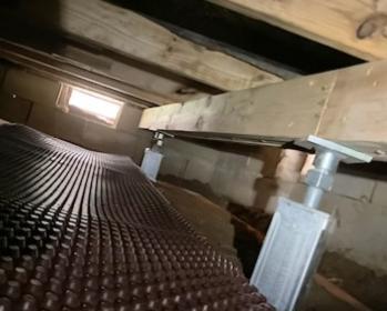 Here is an amazing before and after picture of our Drainage Matting and our SmartJack Crawl space Stabilizer. With high humidity levels in your crawl space, it's very common that wood beams begin to rot and decay, this can lead to sagging floors in your living room. To fix this issue we installed our drainage matting to prevent moisture and guide water to a sump pump system. We also installed our Smart Jack Stabilizer to support that sagging beam.