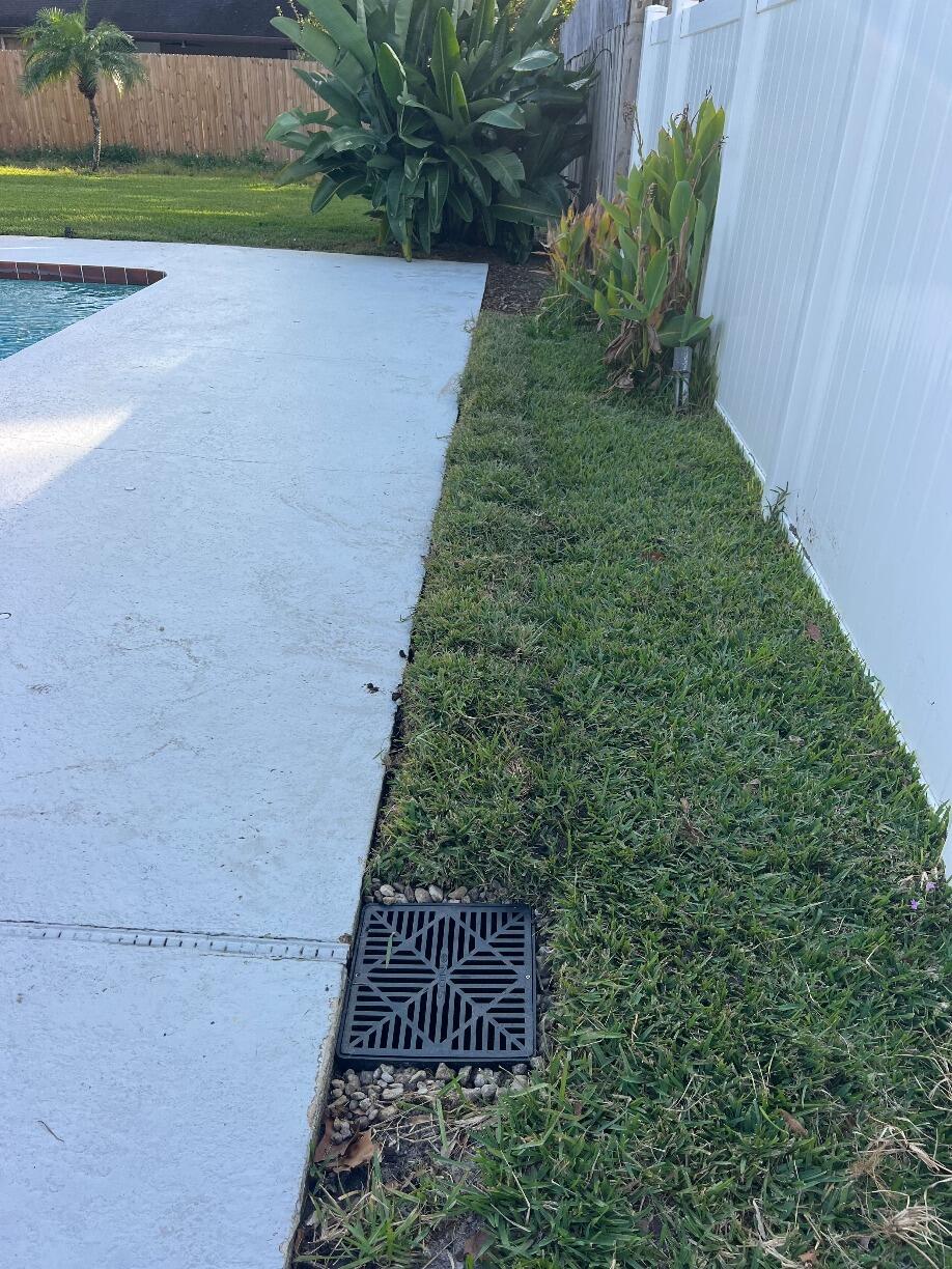 Ken’s pool deck in Longwood, Florida, often flooded during heavy rainstorms, leaving large pools of water that drained slowly. Seeking a lasting solution, he contacted LRE Foundation Repair. Our Design Specialist inspected the property and found that the original channel drains had become damaged and were no longer adequate for providing proper drainage, causing persistent pooling. We proposed installing a new exterior drainage system featuring an upgraded channel drain to efficiently collect and divert rainwater away from the deck. After Ken’s approval, our team removed sections of concrete, installed the new channel drain, and connected it to a subsurface drainage pipe system. Now, Ken’s pool deck is well-protected with a superior drainage solution that prevents pooling and safeguards his home from water damage.