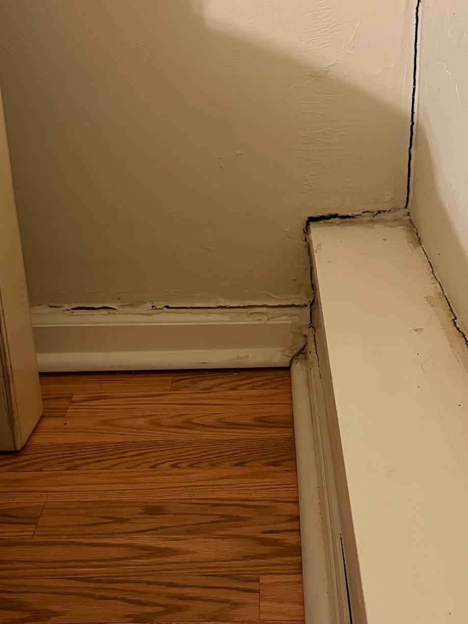 Before & After: This home was experiencing wall separation from baseboards and a large crack above a door frame. Our team lifted and stabilized the foundation, restoring proper alignment and closing all gaps.