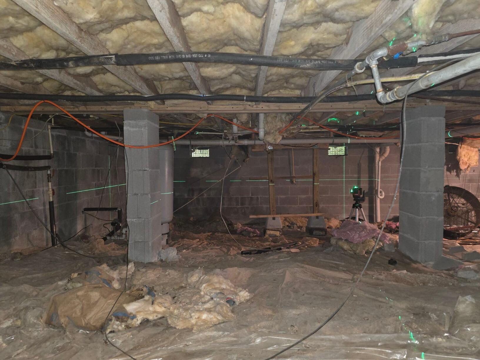 In Esom Hill, a homeowner faced significant issues with mold, musty odors, and sagging floors due to moisture in their crawl space. The before photo captures these challenges, driven by excess humidity and mold growth, affecting the home's upper levels. Our team at Atlanta Basement Systems provided a comprehensive solution for this problem. Notice the transformation in the after photo: we installed the SmartJack® to stabilize and lift the floors, used CleanSpace® to encapsulate the space for moisture protection, and introduced the SaniDry™ Sedona dehumidifier to maintain a dry, healthy environment.