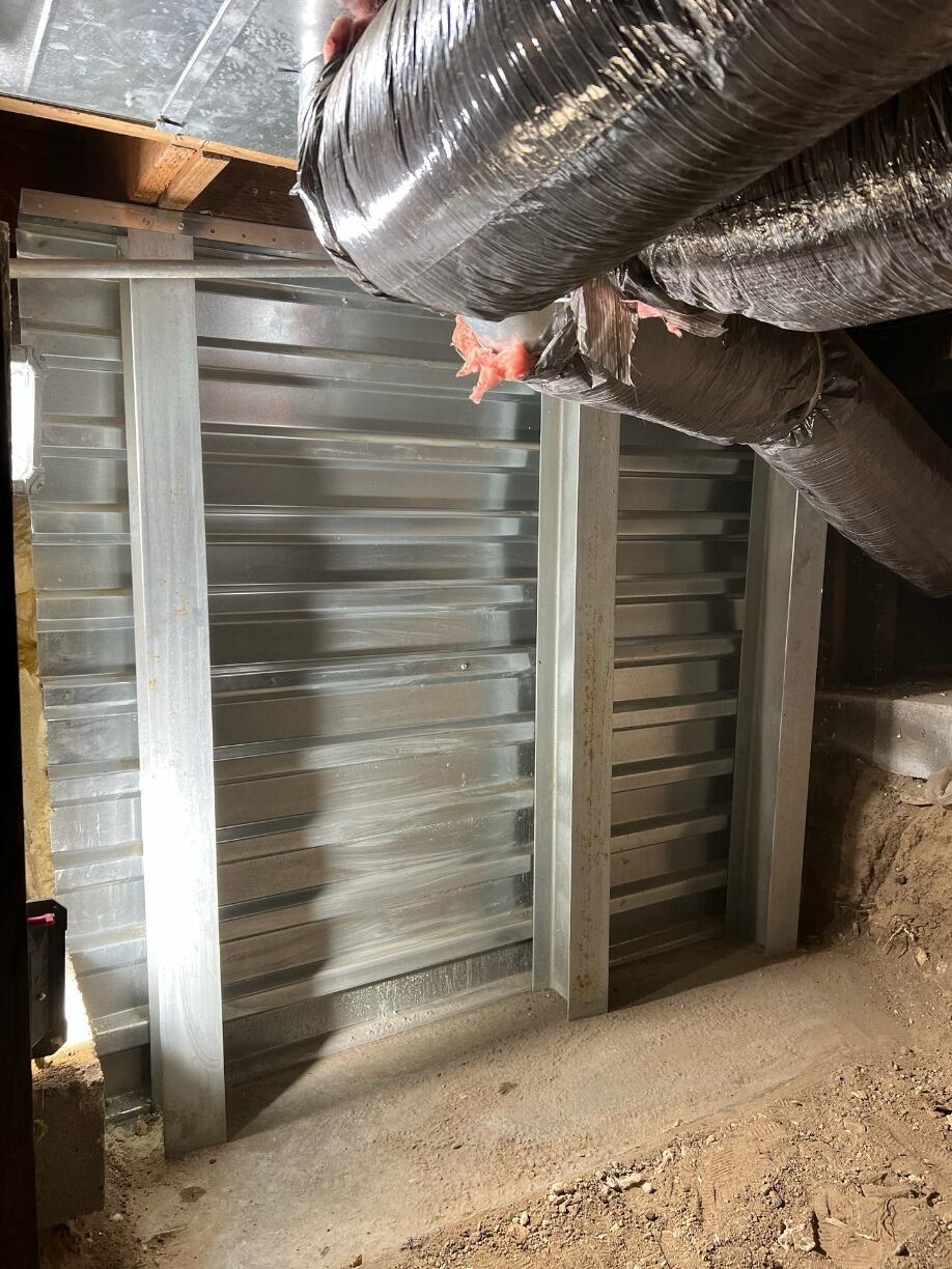 Foundation settlement was causing this home's cellar to begin collapsing. Luckily, we were able to install our EverBrace© system just in time. It permanently stabilizes even the most severe failing, deteriorating, bowed or cracked foundation walls with custom-fit steel corrugated panels that span between steel I-beams. Now, the cellar is secure for many more years to come!