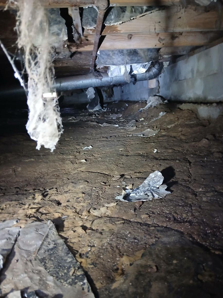 As you can see in the before picture, the mold was growing all over the area, which was hidden beneath the house and was only visible in the crawlspace. It wasn't until a design specialist from Healthy Spaces took a look at the crawlspace that the damage was finally revealed. It's suspected that the leak had been occurring for at least 9 months before it was severe enough to be detected.