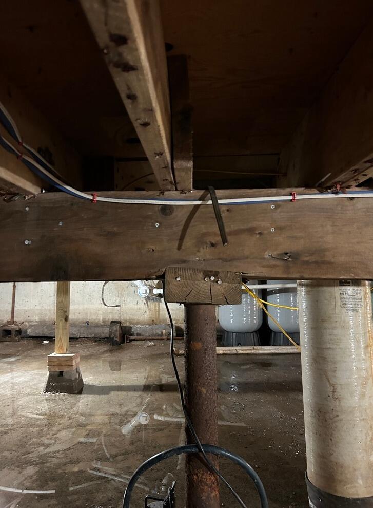 The slab was beyond repair and needed to be replaced, so the homeowner chose to install a new Slab with WaterGuard. The area was prepped and regraded to create a level surface for the new slab. Drainage Matting was then laid down to create an inorganic barrier for the new slab to rest on, protecting it. The area needed to be waterproofed, so WaterGuard Perimeter Drain was installed to collect and channel water to the new TripleSafe Sump Pump. The TripleSafe features two Zoeller sumps and a battery-powered backup sump that protect the homeowner during rain events and power outages. The TripleSafe takes the water and pumps it through an Exterior Buried Discharge line. The floor above had a bounce and a slight sag to it, so SmartJacks were installed to stabilize the floor. SmartJacks have the ability to be adjusted after installation, so the homeowner is able to keep their floor stable as the home settles in the future. The basement was fully prepped, and the new slab was poured, leaving the homeowner with a smooth floor. To finish the waterproofing system, a SaniDry Sedona was installed to keep the humidity level in the basement at a safe level, preventing mold growth.