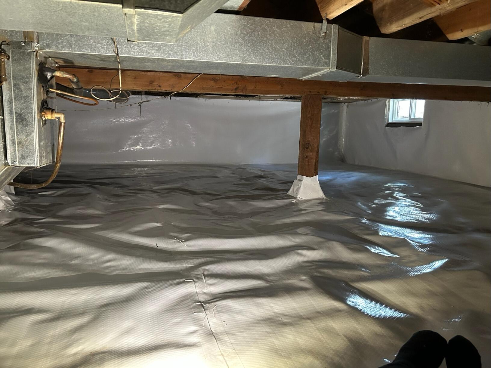 In this Arden Hills, MN project, we installed a full CleanSpace Encapsulation System to address chronic moisture issues. The solution included a heavy-duty CleanSpace vapor barrier across the floor and walls, sealed seams, and airtight vent covers to isolate the crawlspace from outside air and groundwater vapor. This system not only improves energy efficiency and air quality but also protects structural components from long-term moisture damage.