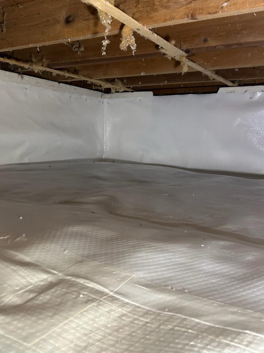 We installed our CleanSpace encapsulation system to completely seal the crawl space from the earth and outside air. This durable, reinforced liner was applied across the crawl space floor and walls, creating a bright, clean, and moisture-resistant barrier. The transformation was immediate; the space was now dry, sealed, and no longer a liability under the home.