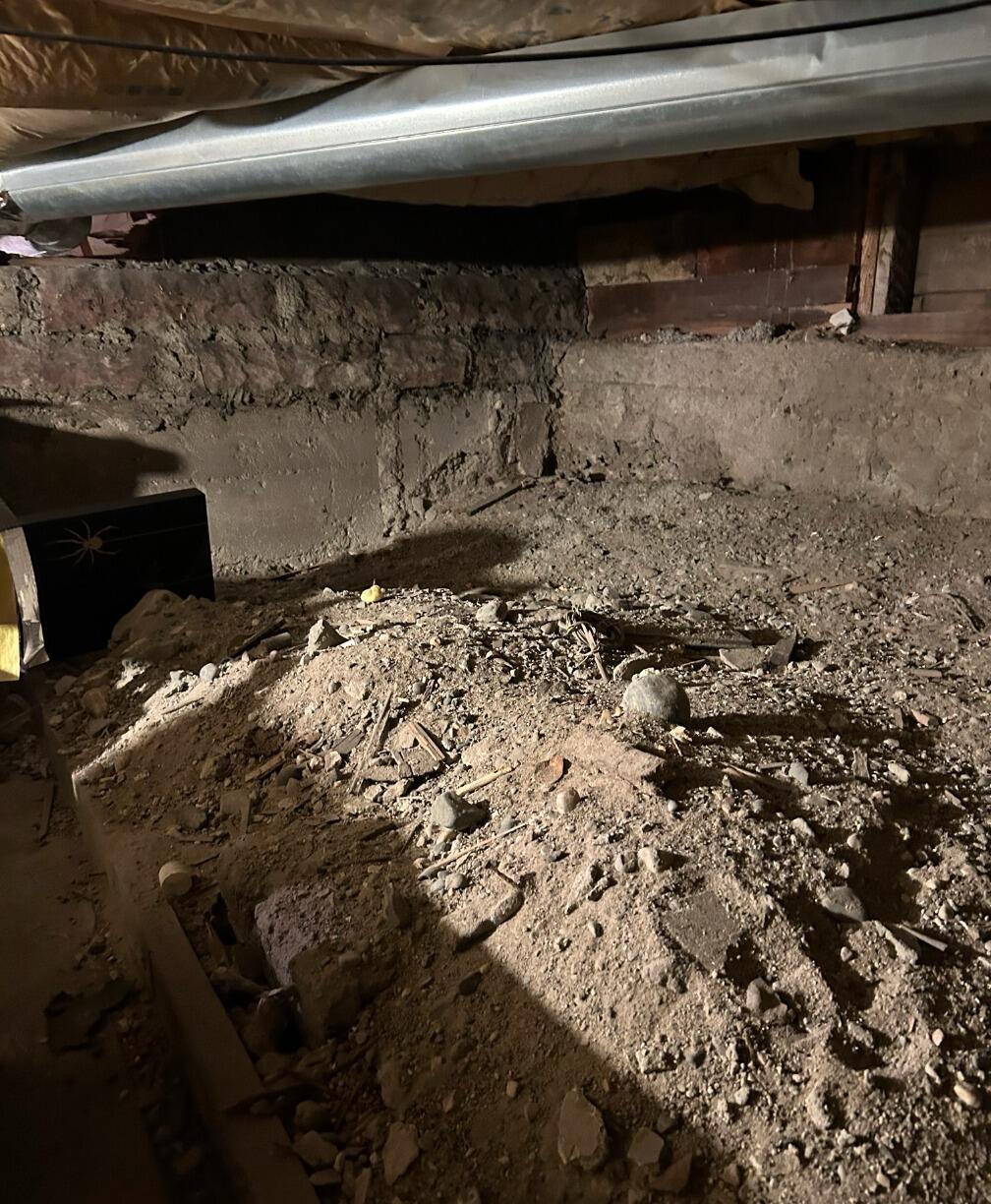 This crawlspace was dark, damp, and filled with exposed dirt and debris. Not only was it an unpleasant environment, but the open soil and lack of moisture control made it a prime source for musty odors, high humidity, and potential mold growth, all of which can affect the health and comfort of the living space above.