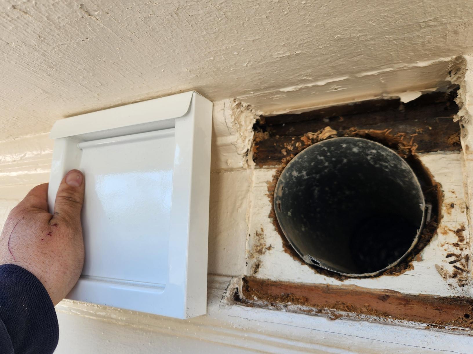 We then carefully removed all of the nesting debris and then disinfected the exhaust vent - in order to eliminate any bird mites that may be lingering around. In order to properly exclude the starling, as well as any other nuisance birds, from getting back into the exhaust vent, we installed a DryerWallVent® over it. The DryerWallVent® is made out of heavy-duty galvanized steel and its large opening and angled damper, along with integrated magnets to keep it closed when not in use, provide maximum airflow efficiency for safe venting.