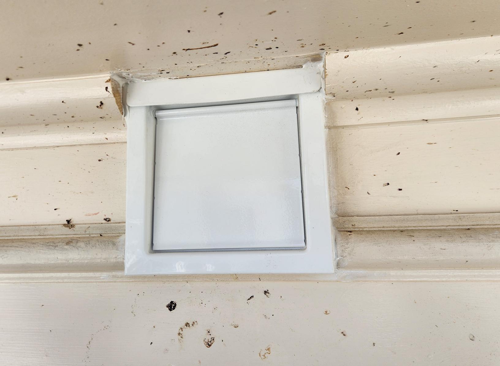 For treatment, we carefully removed all the nesting debris and then properly disinfected every single harborage point. Next, we placed sturdy metal flashing over all the holes in the building and painted them to blend in with the color of the exterior.