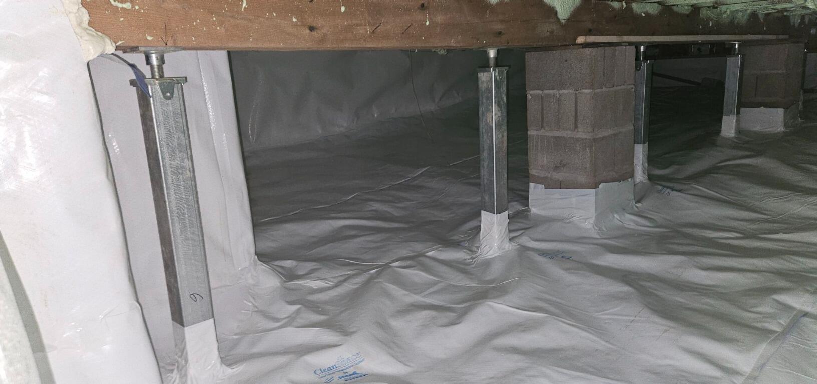 A homeowner called in with a cracked foundation and sagging floors due to moisture in the crawlspace. Our team installed drainage matting, CleanSpace, and SmartJacks to both waterproof and support the home's foundation.