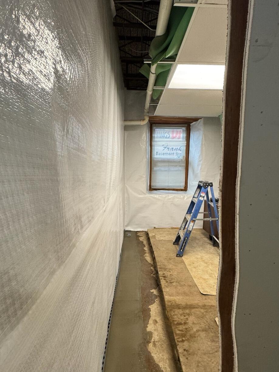This basement storage space for the Yahatt Club was one of the places they didn’t want water in! Frank’s Basement Systems helped turn it into a dry, usable space again by installing the CleanSpace Wall Covering and FlowGuard drainage system to keep water off the floor and flowing into the sump pump.