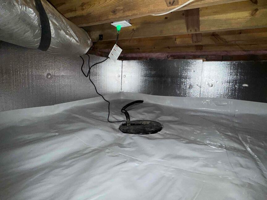 This Burlington, NC home was experiencing excessive crawl space moisture, musty odors, and conditions that can lead to mold growth and wood deterioration. To address these issues, our team installed a full crawl space encapsulation paired with a sump pump system. The encapsulation seals out ground moisture and humid air, while the sump pump actively manages groundwater intrusion. The result is a drier, healthier crawl space that helps protect the home’s structure, indoor air quality, and long-term value.