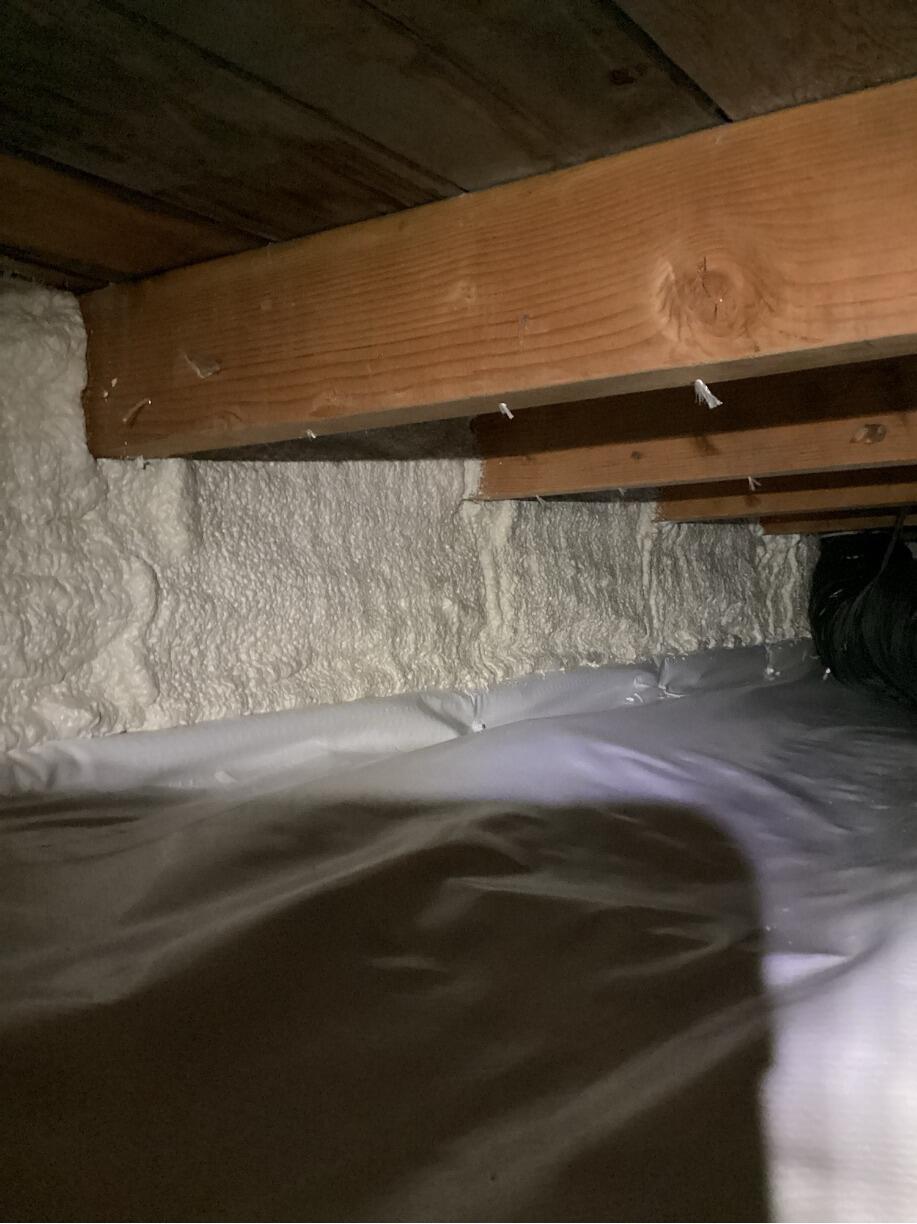 After dealing with fiberglass insulation in the crawl space this homeowner was over it. Every few years it needed to be either changed out or tied up again and mold would have to be dealt with. Since the spaces environment didn't change, the mold just kept returning. This homeowner was ready to try something new, and called up John's Waterproofing to get a free inspection. In the end the warranties on the products and installation gave this homeowner the confidence to get a full encapsulation! They are pleased with how nice the space looks and look forward to testing how it holds up!