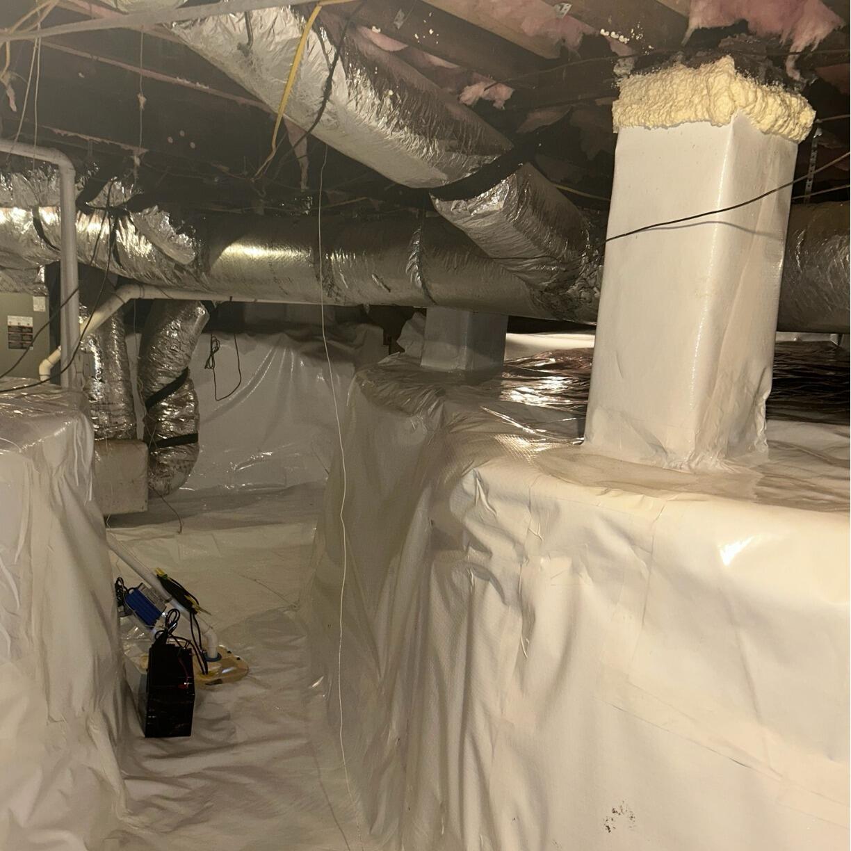 The previous owners encapsulation was initially built without a Sump Pump in 2015, we returned to install a TripleSafe Single Pump system and regrade the crawlspace drainage to direct water seepage to the new Sump system. Completeing the water management system and keeping the crawl space dry after heavy rains.