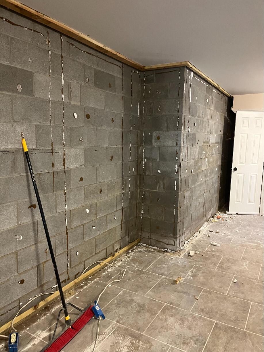 Our crew removed the existing basement walls to access the concrete and installed a WaterGuard XL sub-floor drainage system along with a CleanSpace wall liner. To maintain a dry, healthy environment, we installed a SaniDry Sedona dehumidifier and an Aspen air purifier for ongoing moisture and air quality control.